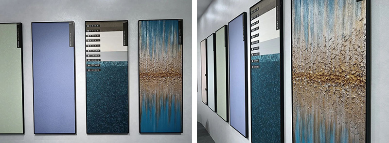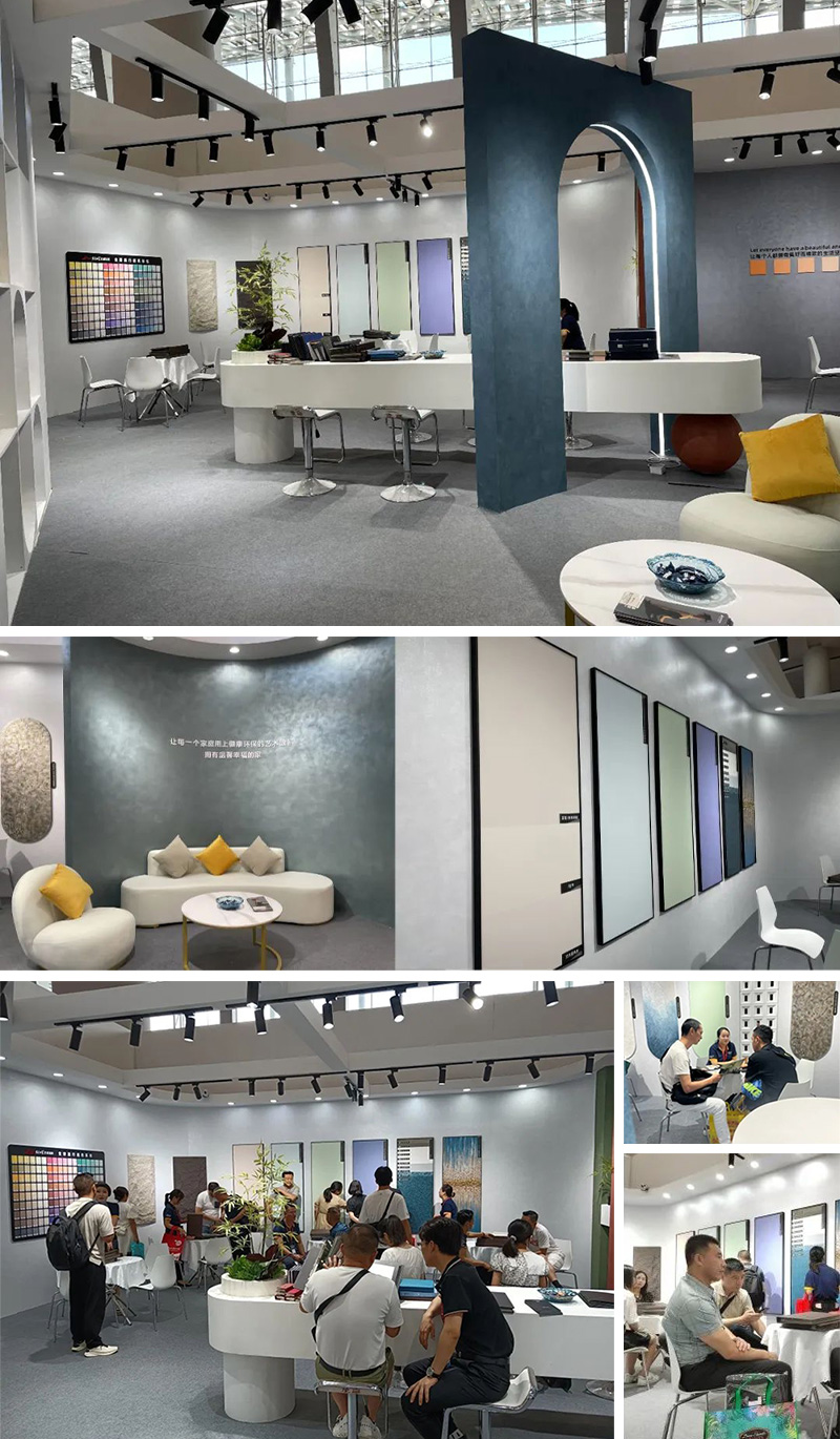 此次展會君匠世家藝術涂料展館中重點推出了6大系列產品:質感極光藝術、藝術陶晶石、巴黎印象、云錦綢緞、水晶膚感漿、豆蔻?膚感原漿,每一個系列都蘊含著獨特的性能與靈感的融合。每款產品可匹配上千種色彩與工藝效果,為您創(chuàng)造出完美的藝術人居環(huán)境。