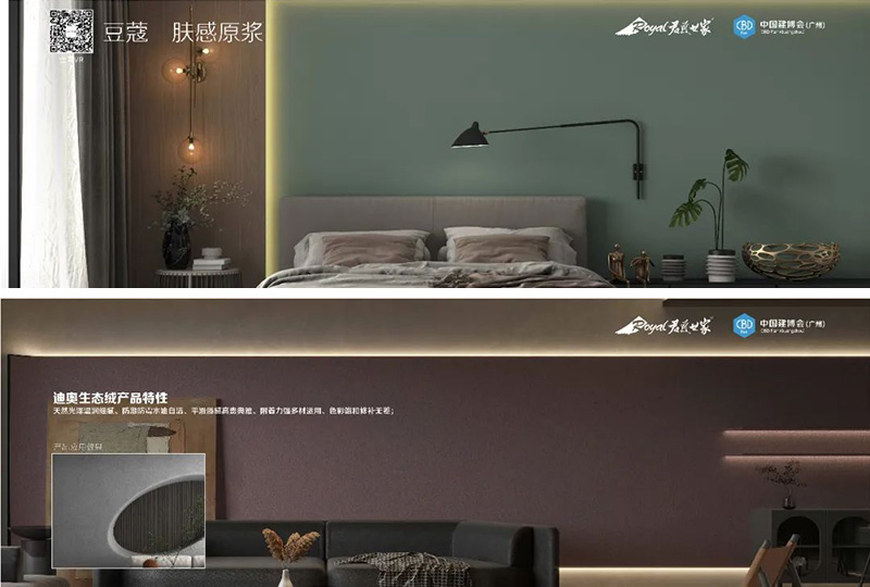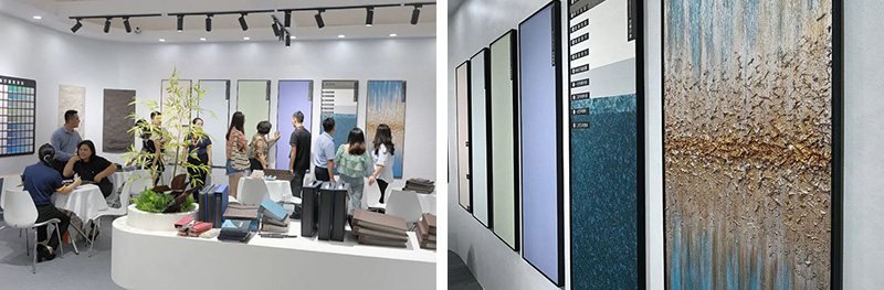 此次展館中重點推出了6大系列產(chǎn)品:質(zhì)感極光藝術(shù)、藝術(shù)陶晶石、巴黎印象、云錦綢緞、水晶膚感漿、豆蔻?膚感原漿,每一個系列都蘊含著獨特的性能與靈感的融合。每款產(chǎn)品可匹配上千種色彩與工藝效果,為您創(chuàng)造出完美的藝術(shù)人居環(huán)境。