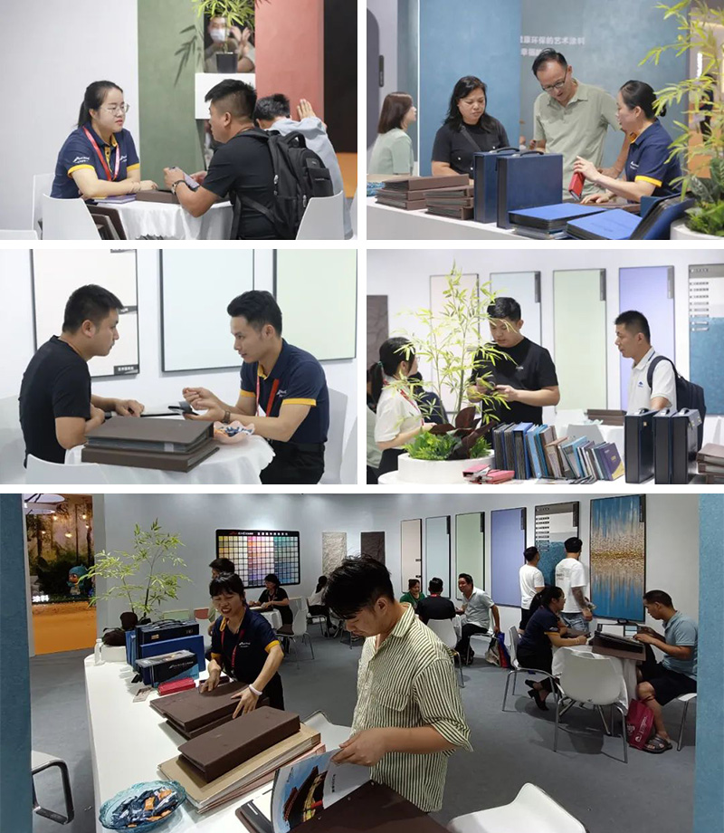 在開展的首日,君匠世家藝術(shù)涂料現(xiàn)場火爆,憑借對匠心工藝的品牌定位,收獲了高關(guān)注度和火爆人氣,迎接了來自全國各地的代理商、經(jīng)銷商、業(yè)內(nèi)專業(yè)人士以及參觀觀眾,君匠世家專業(yè)銷售團隊為到訪嘉賓講解各產(chǎn)品系列的亮點、品牌的深厚文化以及加盟服務模式,獲得了眾多嘉賓的認可。