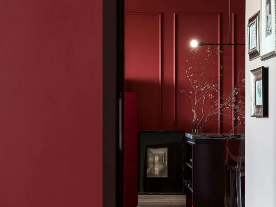 不妨把中國紅刷進家,穩(wěn)重而富有質(zhì)感,紅色既增強了空間的節(jié)奏感,也為空間添上了一抹神秘的氣息,令人駐足往返。