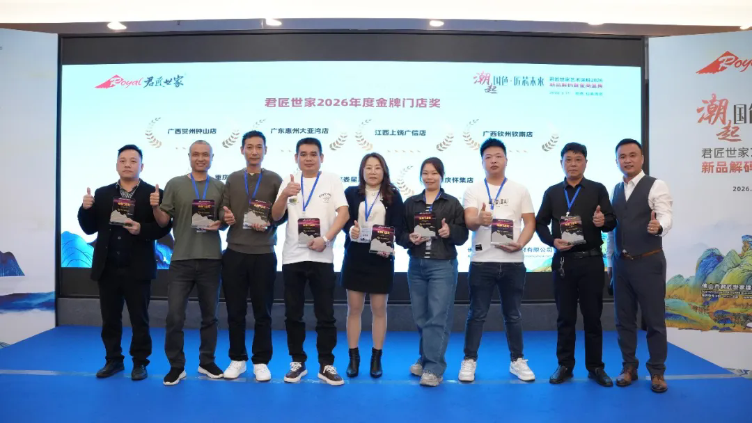 隨后,君匠世家隆重頒發(fā)“金牌門(mén)店獎(jiǎng)”“金牌工藝獎(jiǎng)”“匠心服務(wù)獎(jiǎng)”“優(yōu)秀經(jīng)銷商獎(jiǎng)”等多個(gè)獎(jiǎng)項(xiàng),表彰過(guò)去一年表現(xiàn)卓越的門(mén)店與個(gè)人。獲獎(jiǎng)?wù)叩桥_(tái)領(lǐng)獎(jiǎng),全場(chǎng)掌聲雷動(dòng),溫情與榮耀交織。