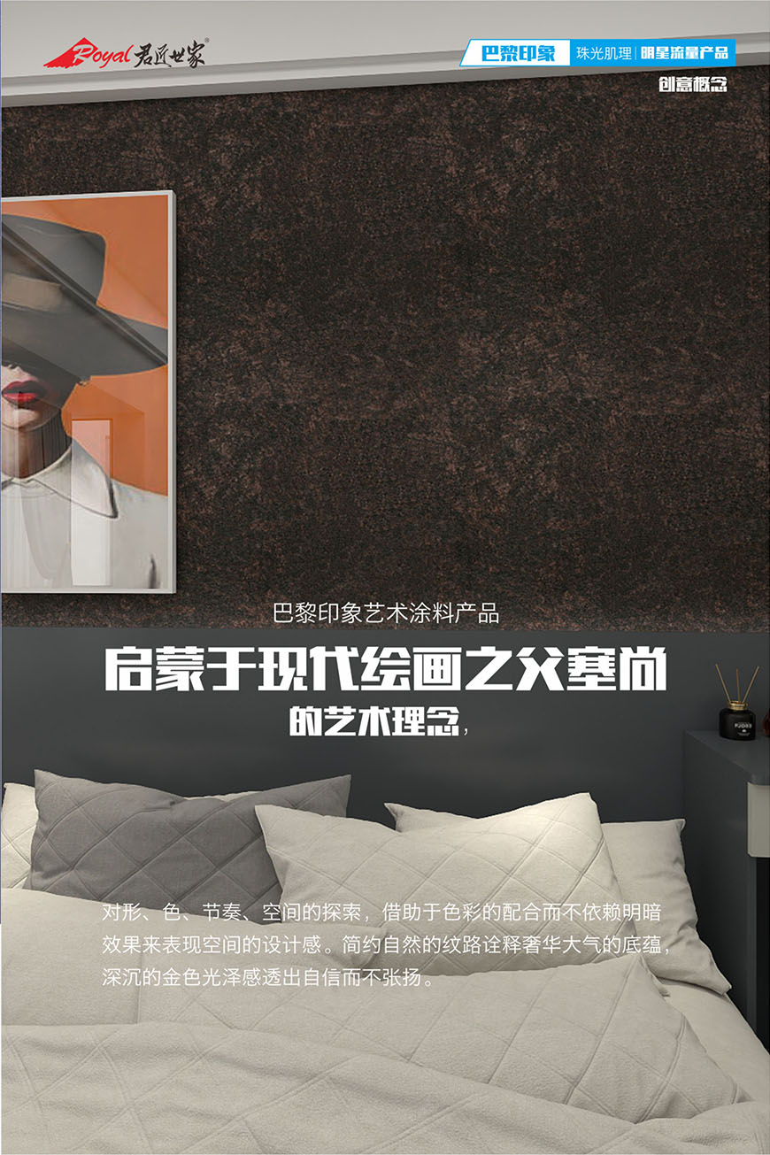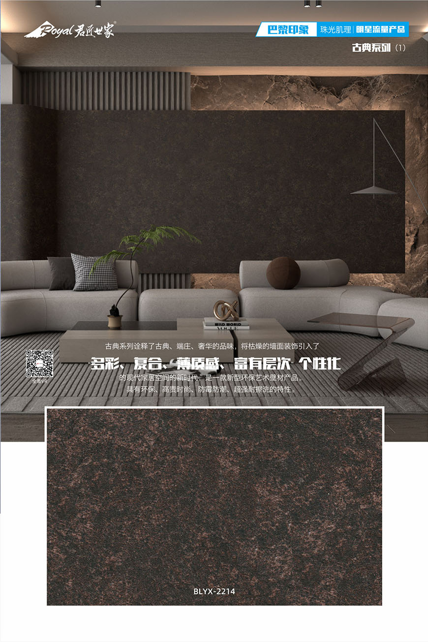 巴黎印象是一款新型環(huán)保藝術(shù)壁材產(chǎn)品,具有環(huán)保、高貴時尚、防霉防潮、超強耐擦洗的特性。