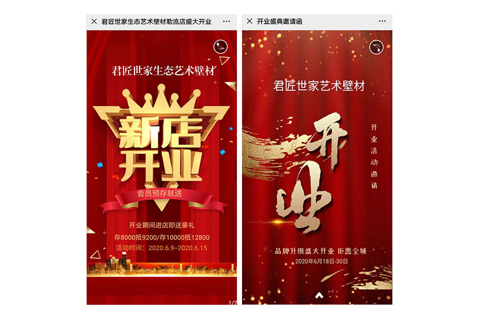 開(kāi)業(yè)前一周進(jìn)行蓄水期引流、建立社群、爆破樓盤(pán),通過(guò)微信朋友圈進(jìn)行炒作,提高知名度,制作開(kāi)業(yè)活動(dòng)的易企秀宣傳鏈接,獲取精準(zhǔn)客戶(hù)的信息。